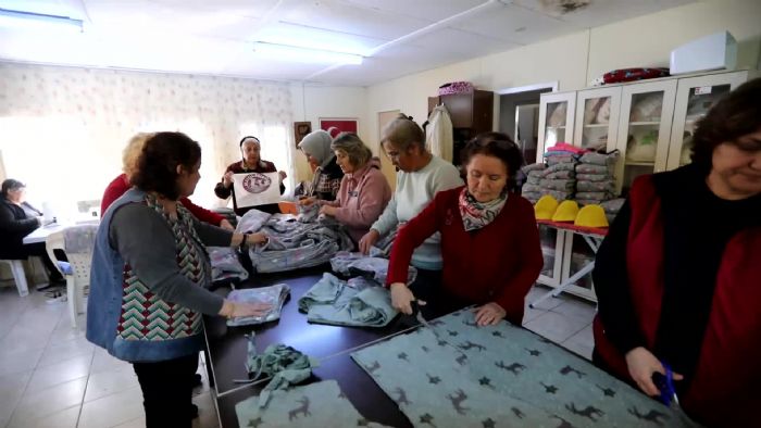 Mezitli Belediyesi Menderes Mahallesi Gönüllüevi`nin kadınları, afet bölgesindeki depremzedelere gönderilmek üzere kendi imkanlarıyla kumaş alarak pijama ve çoc...