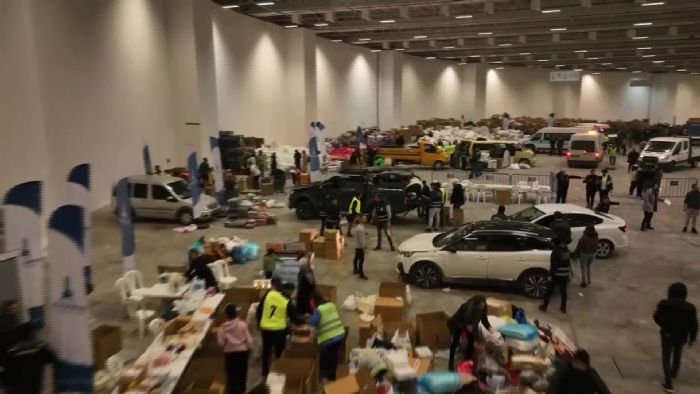 Çankaya Belediyesi Ahmet Taner Kışlalı Spor Salonu`nda toplanıp deprem illerine gönderilen insani yardım araçlarının sayısı 142`ye yükseldi. Ankara`daki Rusya B...